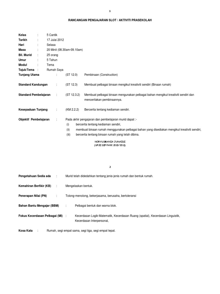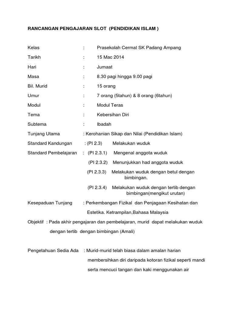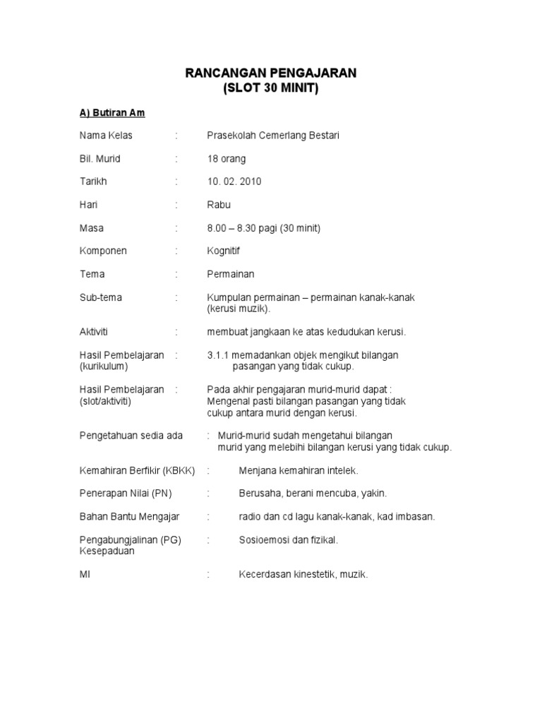 Contoh Rancangan Pengajaran Slot Prasekolah Otosection