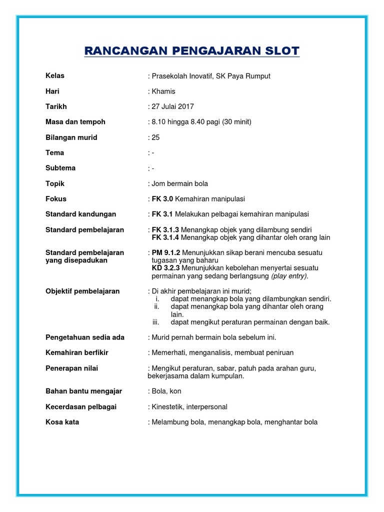 Rancangan Pengajaran Slot Prasekolah Pdf